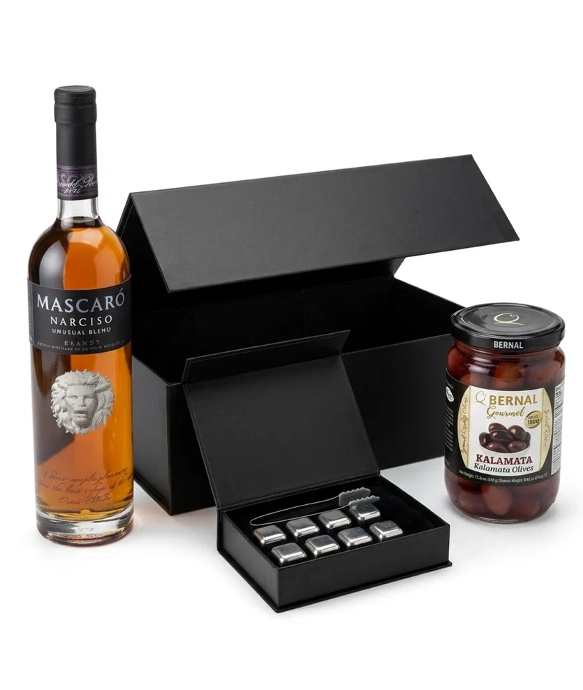 Набор из бренди NARCISO, оливок и стальных кубиков для охлаждения льда в подарочной упаковке